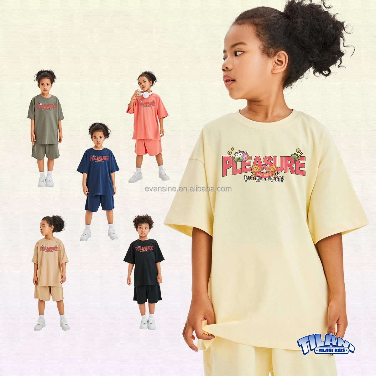 Children's 2 Piece Apparel Set Customizable Short Sleeve T Shirt Shorts Cotton Casual Wear for Boys Girls OEM